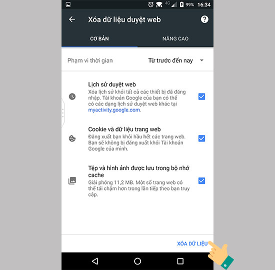 Bước 4: Tick chọn các tuỳ chọn bạn muốn và nhấp Xoá dữ liệu.