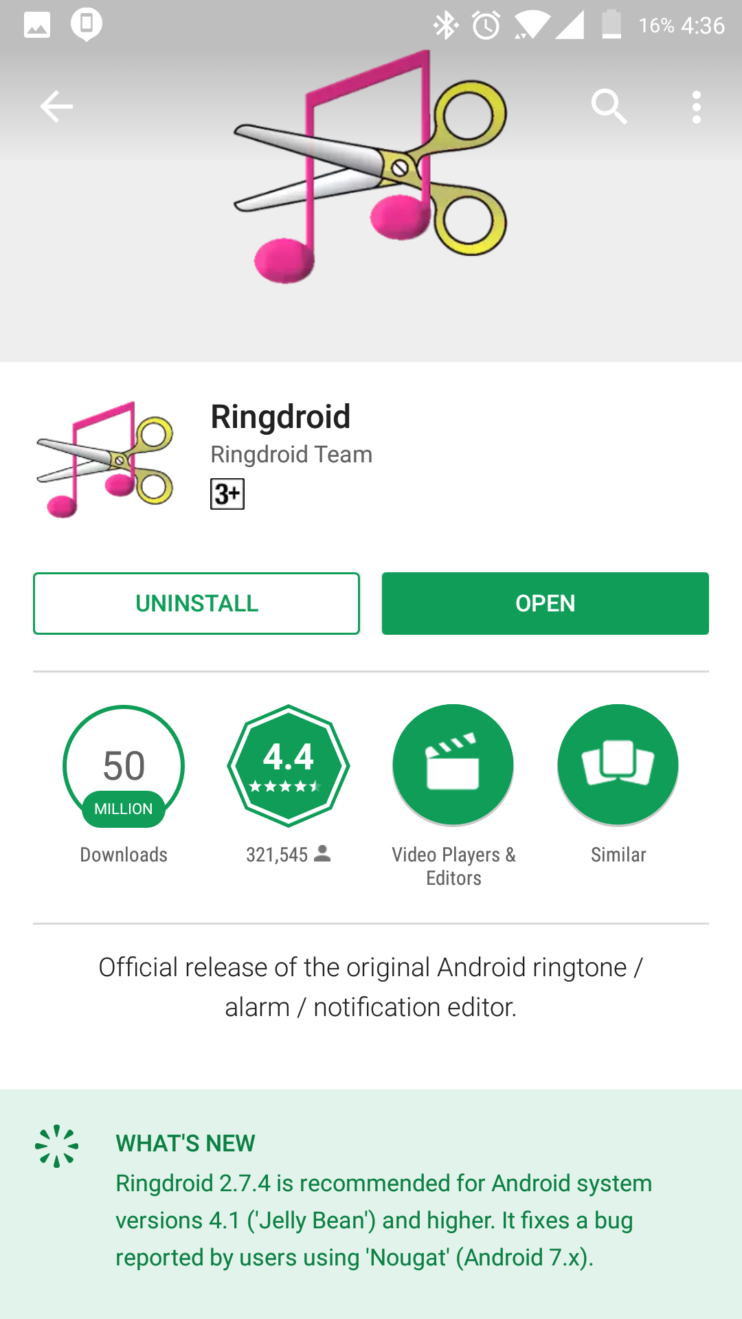 Bạn thích một bài hát? bạn muốn cắt ghép bài hát đó để đặt làm nhạc chuông nhưng sợ phải dùng ứng dụng lằng nhằng trên máy tính? Ringdroid sẽ giải quyết hết các vấn đề đó cho bạn ;) Giao diện của ứng dụng hơi tối và có phần "cổ" nhưng nó là một trong những ứng dụng cắt nhạc cực hiệu quả trên Android. Chỉ mất chưa tới 1 phút là bạn đã làm xong một đoạn nhạc chuông / nhạc báo thức ưng ý cho chiếc smartphone của mình