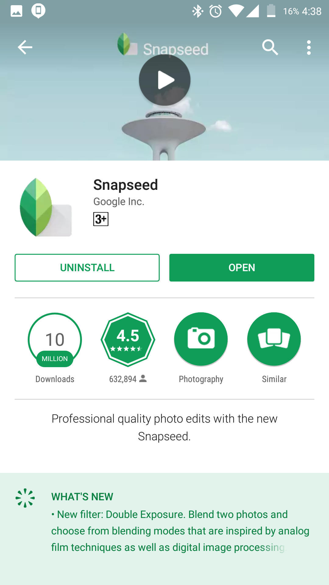 Được Google đầu tư tâm huyết, Snapseed chắc chắn sẽ khiến Camera 360 huyền thoại của chị em hít khói dài dài. Với tất cả các tùy biến mà ứng dụng cung cấp, các bạn có thể tạo ra vô vàn bức ảnh đẹp với nó. Tin mình đi, mình đã từng chụp ảnh dưới trời mưa khá u ám. Ứng dụng đã giúp mình chỉnh nó trở nên đẹp hơn bao giờ hết
