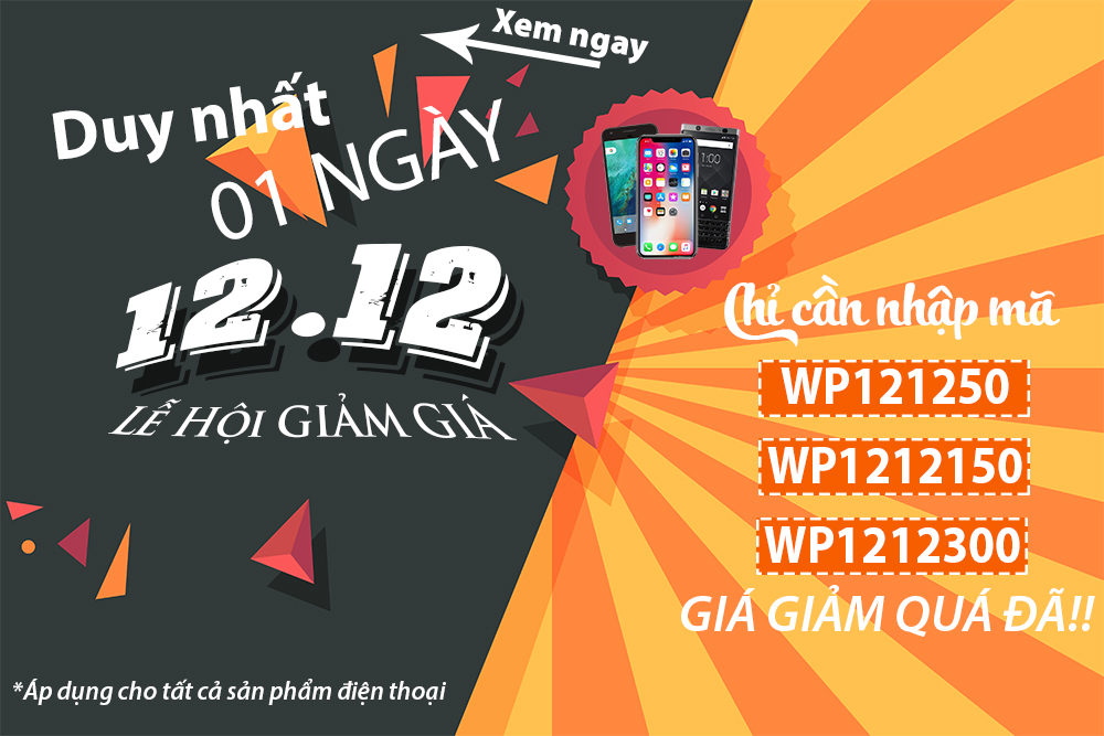 Nhân dịp ngày 12/12 – Ngày hội mua sắm Online, Worldphone đem đến cho quý khách hàng một chương trình khuyến mãi giảm giá đặc biệt nhất trong năm.