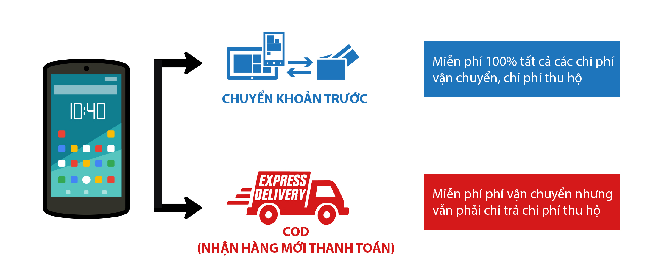 Phương thức thanh toán: Khách hàng lưu ý khi lựa chọn hình thức này sẽ mất thêm phí thu hộ cho bên vận chuyển