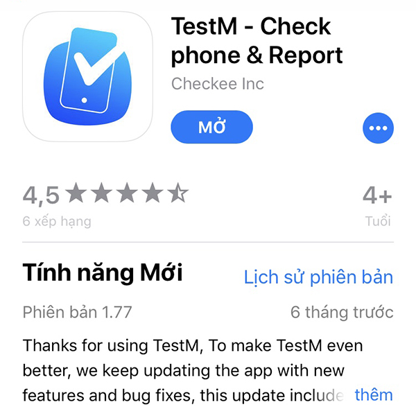 TestM là ứng dụng hỗ trợ người dùng kiểm tra toàn diện các phần cứng trên máy có hoạt động ổn định không, sau đó sẽ cho ra báo cáo, bạn có thể sử dụng kết quả của TestM để quyết định có nên mua hay không smartphone cũ.