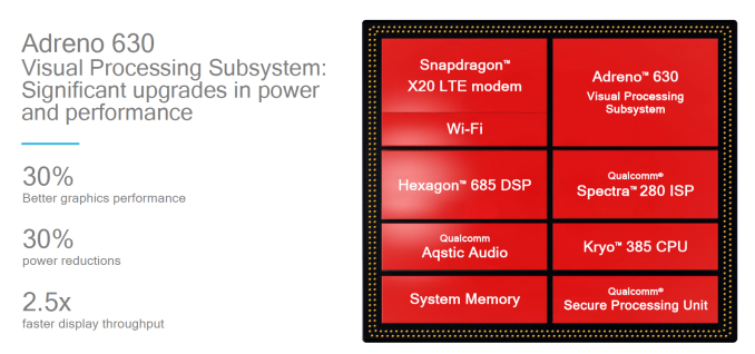 Một trong những thay đổi lớn mà Snapdragon 845 mang lại đó là là cấu trúc GPU mới. Theo truyền thống, Qualcomm luôn giữ bí mật khi nói về chi tiết về GPU Adreno của họ và Adreno 630 cũng không ngoại lệ. Dấu hiệu dễ nhận thấy nhất cho thấy sự chuyển mình về cấu trúc GPU đến từ chính tên gọi của chúng khi series Adreno 5xx nay đã chuyển sang Adreno 6xx.