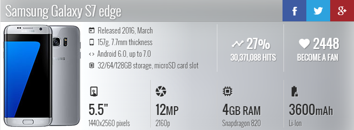 Cấu hình Samsung Galaxy S7 Edge 2 SIM