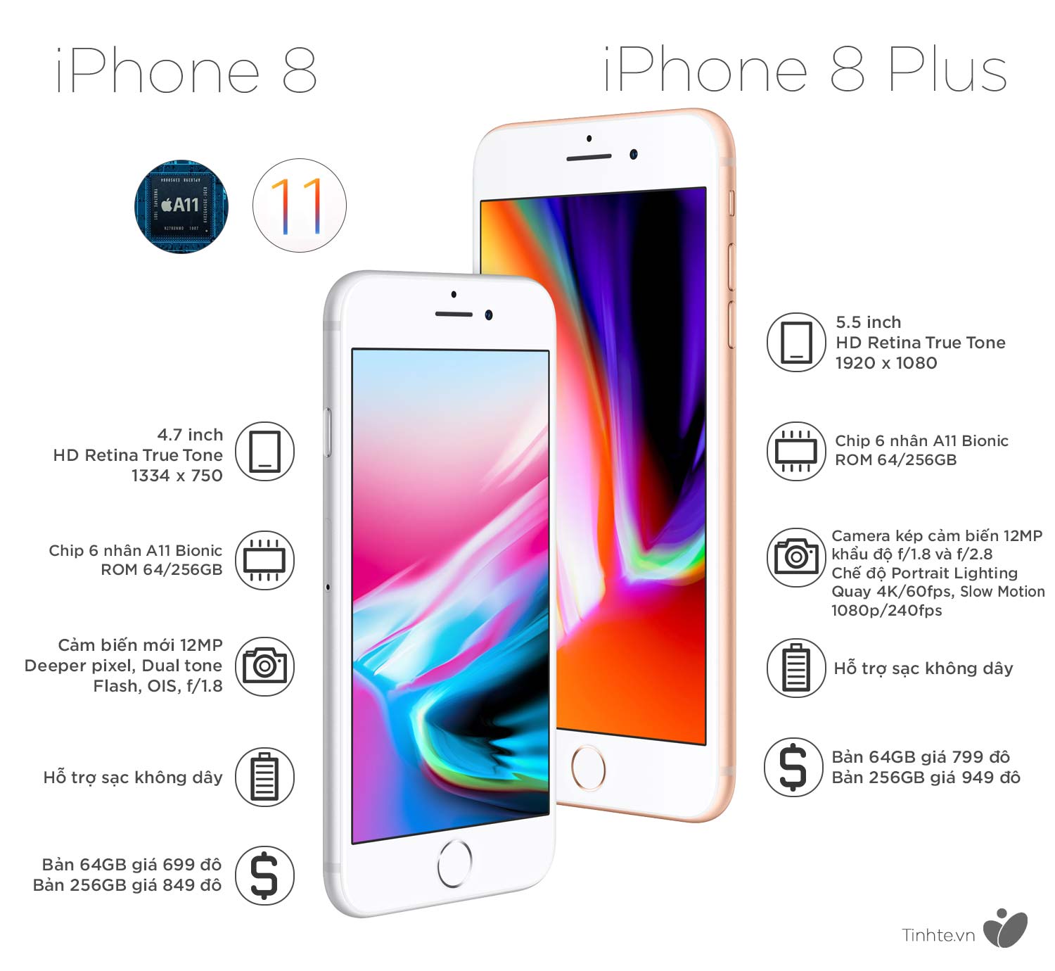 Ra mắt vào tháng 9 năm 2017 với hệ điều hành iOS 11 mới nhất, iPhone 8 Plus đã đem tới rất nhiều điểm sáng tới thị trường điện thoại. Điểm mạnh của iPhone 8 Plus là Camera kép 12 MP xuất sắc, màn hình khá lớn 5.5-inch và đặc biệt là hiệu năng sử dụng được cải tiến vượt trội hơn cũng như là khả năng sạc pin không dây.
