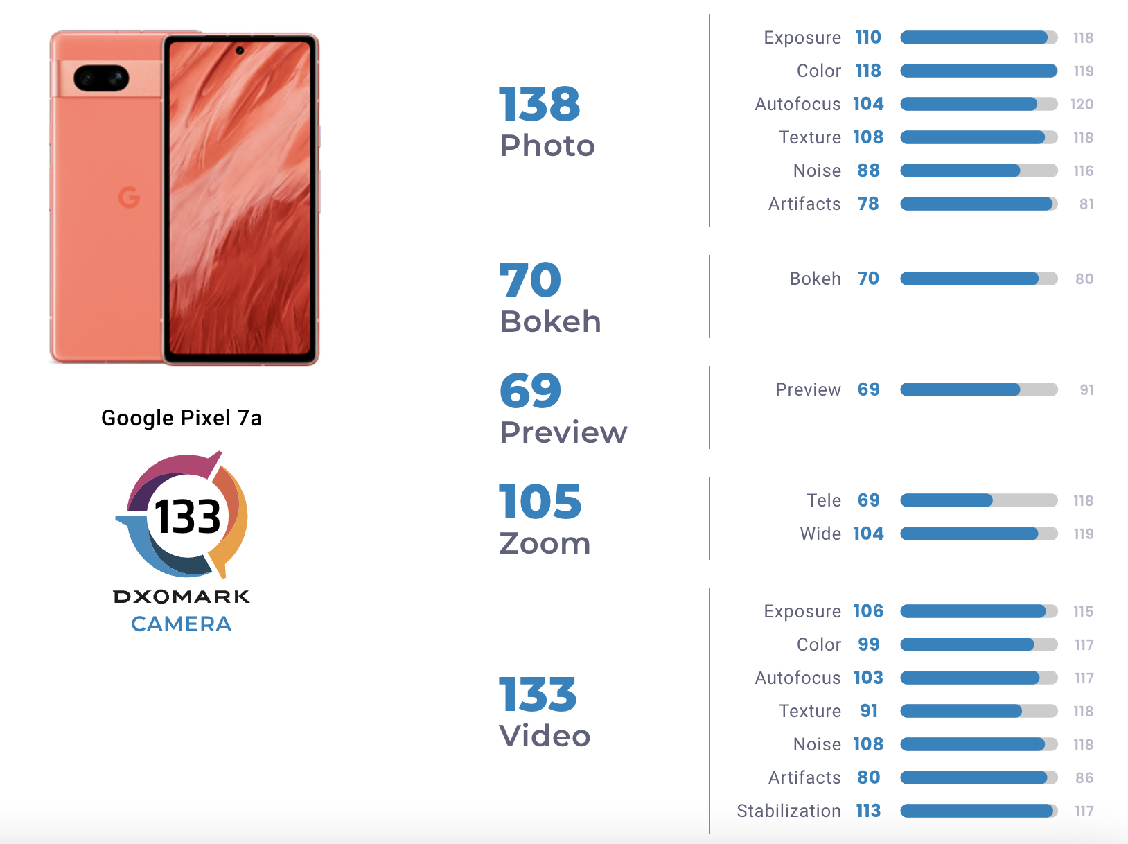 Điểm DXOMARK cho Camera của Google Pixel 7a
