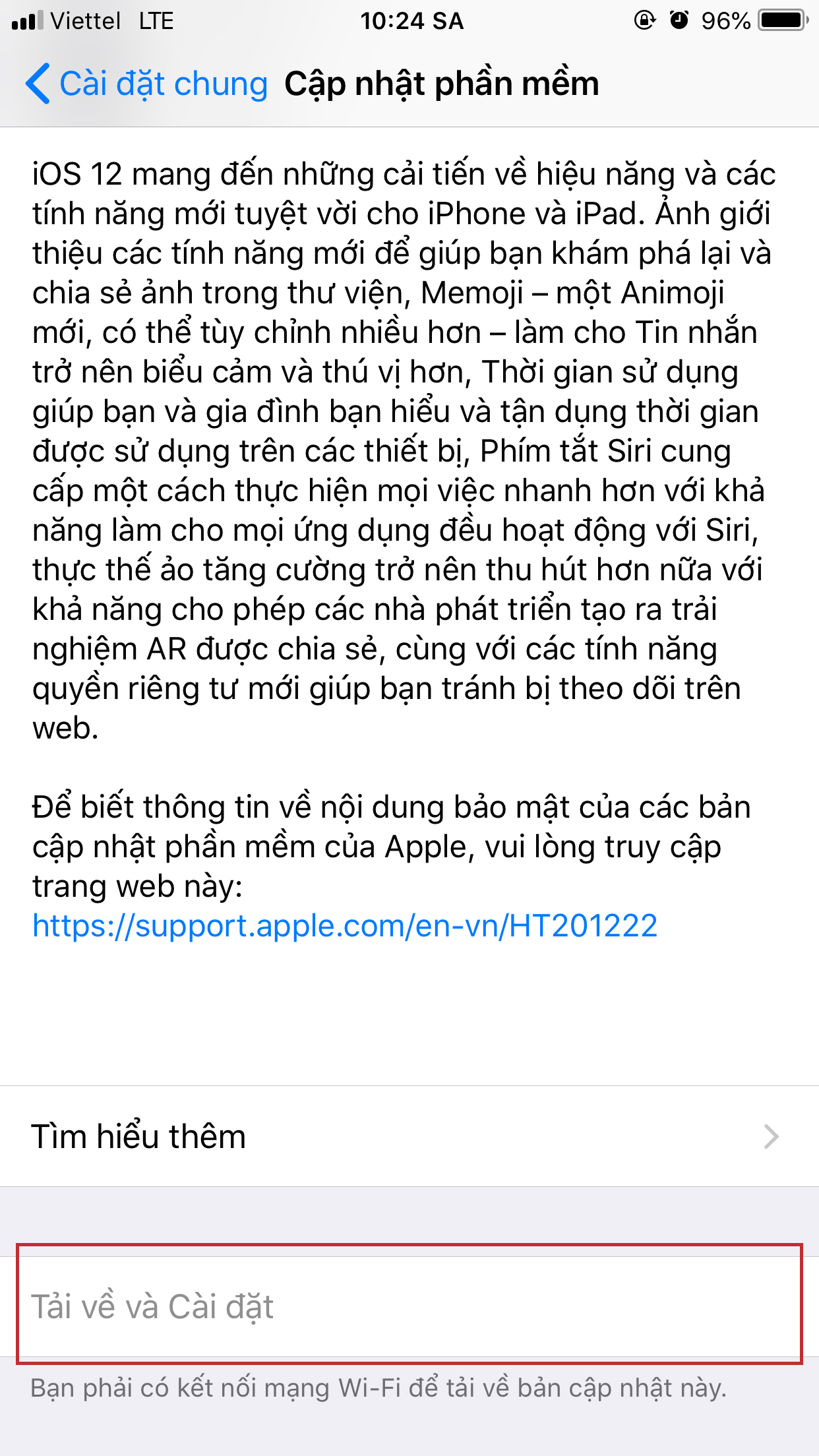 Lưu ý: Bạn cần sử dụng wifi và có mức pin trên 50% mới có thể tiến hành cập nhật phần mềm nhé