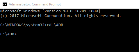 Bước 5: Mở CMD bằng quyền Admin, gõ cd \ADB rồi ấn Enter