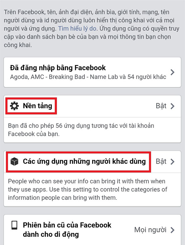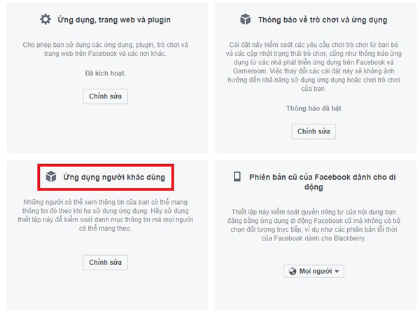- Chọn Các ứng dụng những người khác dùng để kiểm soát việc thu thập thông tin từ ứng dụng của bạn bè tương tự như phiên bản web.
