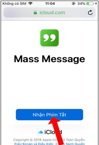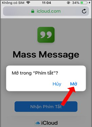 Đầu tiên người dùng truy cập vào link https://www.icloud.com/shortcuts/3a8d28c2c6414e6b94a47ab8b09d5cfc để cài đặt phím tắt Mass Message.