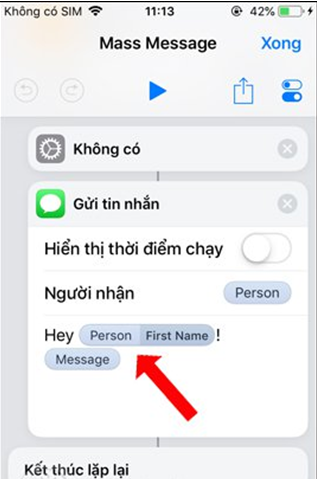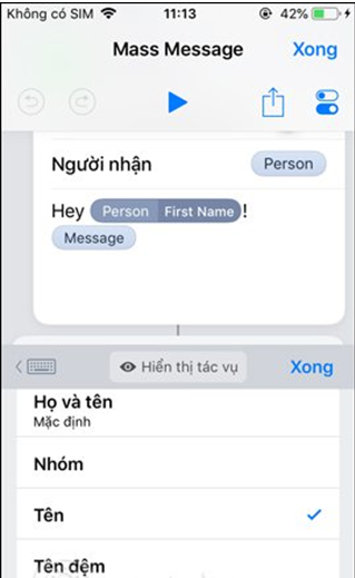 Lúc này sẽ hiển thị thêm nội dung lời chào tin nhắn trước mỗi nội dung tin nhắn chính với cú pháp Hey Persion First Name. Trong đó First Name chính là tên lưu trong danh. Có thể thay đổi nội dung này bạn nếu muốn.