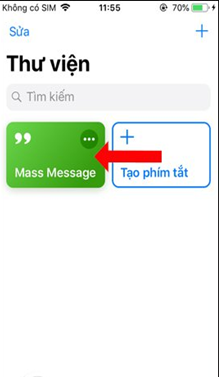 Trong giao diện ứng dụng Siri Shortcuts sẽ thấy phím tắt Mass Message. Nhấn vào biểu tượng dấu 3 chấm để cấu hình phím tắt.