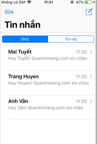 Truy cập vào mục Tin nhắn trên điện thoại sẽ thấy nội dung tin nhắn đã được gửi cho từng người. Mở đầu nội dung sẽ là lời chào với người gửi mà bạn đã thiết lập lúc trước. Sau đó sẽ là nội dung chính của tin nhắn.