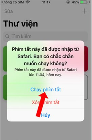 Sau đó, bạn nhấn chọn vào Nhận phím tắt để tiến hành cài đặt. Sau đó bạn sẽ được hỏi có muốn mở phím tắt trong ứng dụng Siri Shortcuts không, nhấn nút Mở.