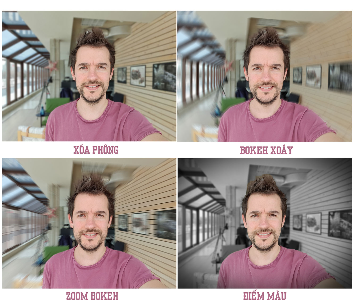 Bên cạnh đó, chế độ lấy nét động còn được bổ sung thêm các hiệu ứng như bokeh xoáy, zoom bokeh và điểm màu, mang đến cho người dùng hiệu ứng lạ mắt hơn khi chụp mờ phông.