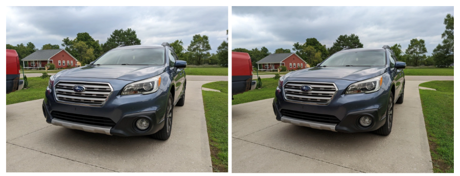 Cả hai camera chính của Google Pixel 6 và Pixel 6a đều ghi lại những chi tiết nhỏ hơn ở lưới tản nhiệt và đèn pha của ô tô. Sự khác biệt duy nhất có thể nhận thấy là hiệu ứng bokeh tự nhiên được bổ sung trong ảnh chụp của Pixel 6. Đáng chú ý nhất là ngôi nhà màu đỏ ở hậu cảnh. Pixel 6a cố gắng giữ cho các chi tiết của bảng điều khiển được lấy nét, trong khi cảm biến lớn hơn của Pixel 6 làm mờ chúng để làm cho ô tô bật lên thêm một chút.