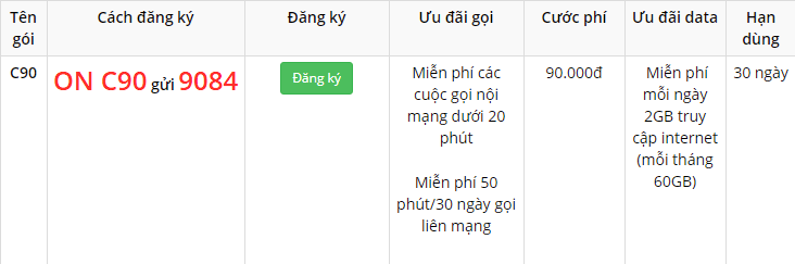 - Cách kiểm tra thuê bao có được tham gia gói C90 hay không: *090# Gọi