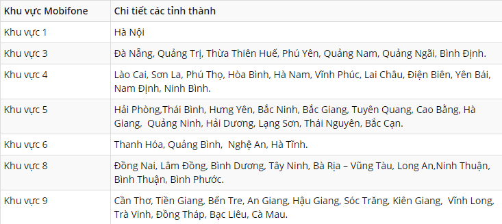 - Các tỉnh thành được hưởng ưu đãi từ gói cước: